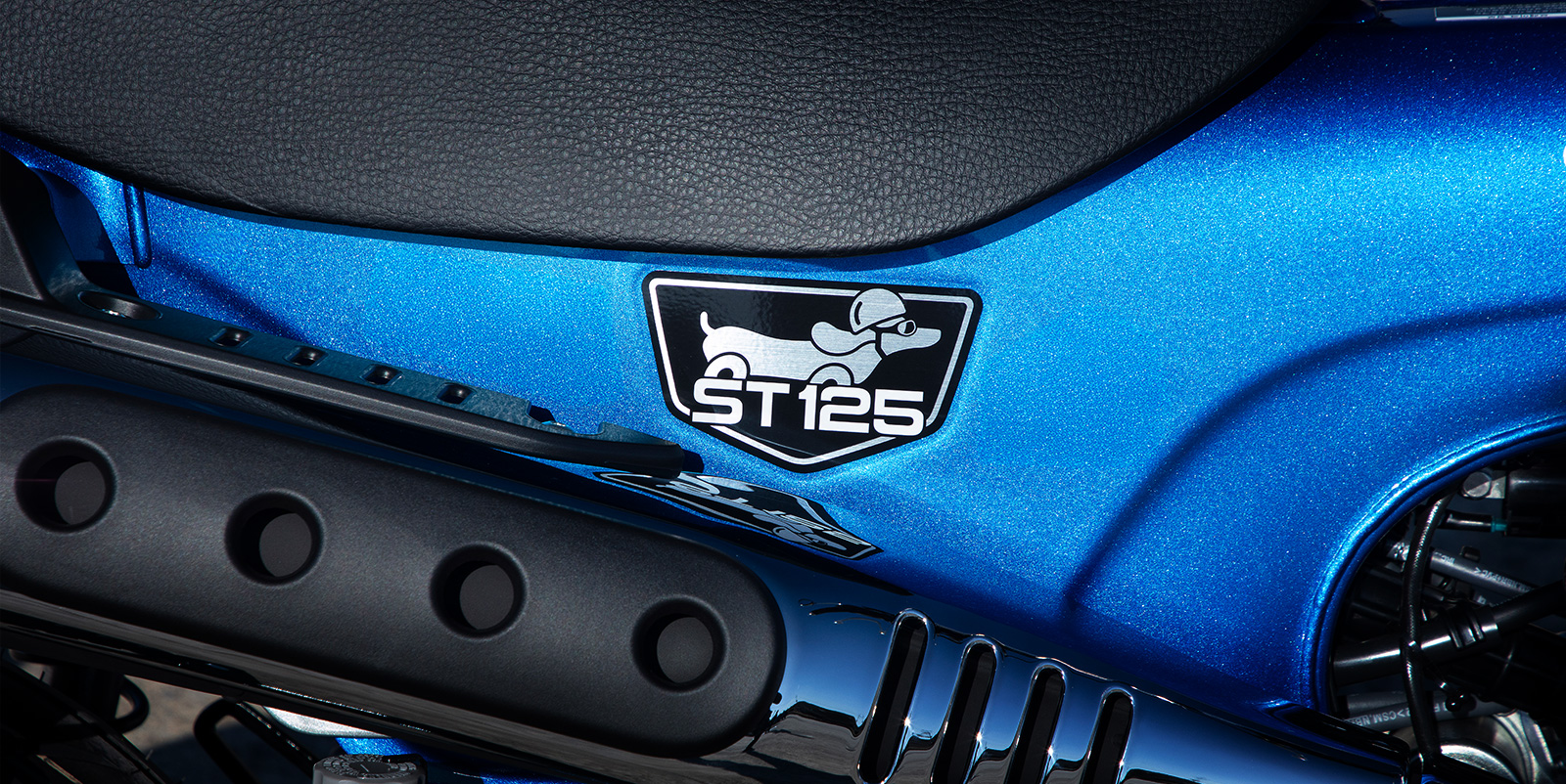 쾌적한 2인승을 위한 더블 시트와 패신저 핸들, 작고 둥근 형태의 헤드라이트와 업 머플러에 크롬 도금을 더해 고급감을 끌어올렸으며, 긴 T자형 프레스 프레임은 귀여운 닥스훈트를 연상시킵니다.