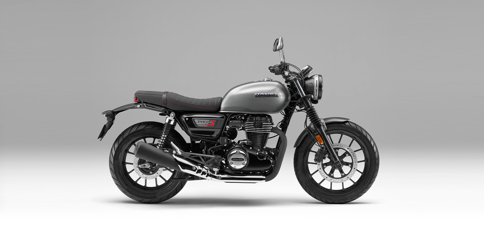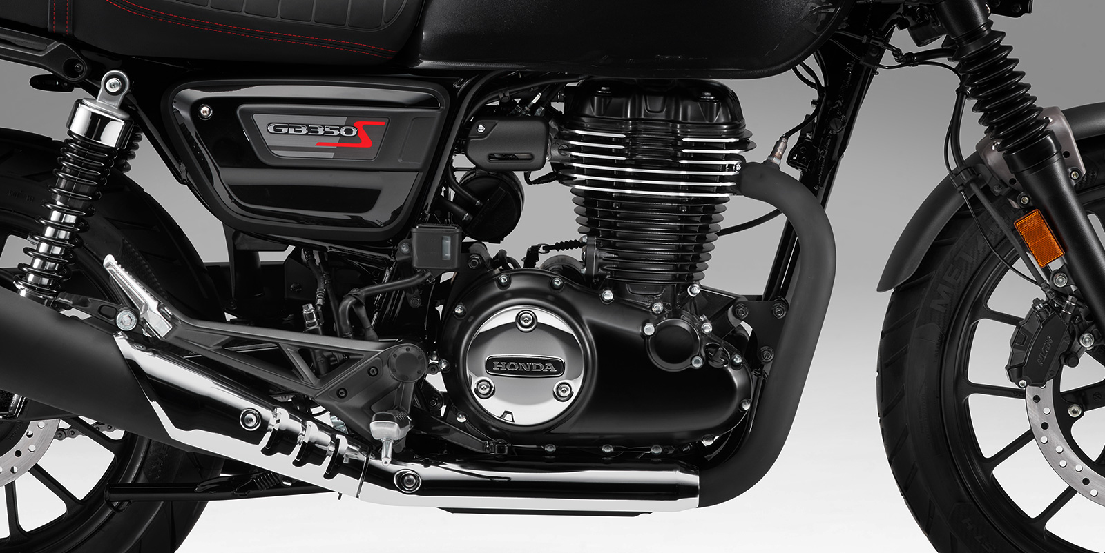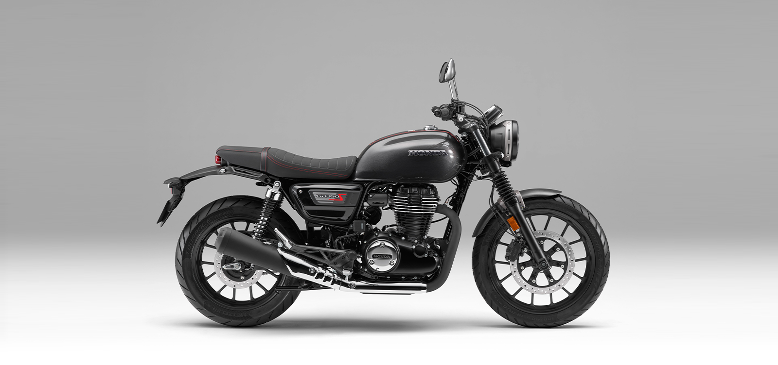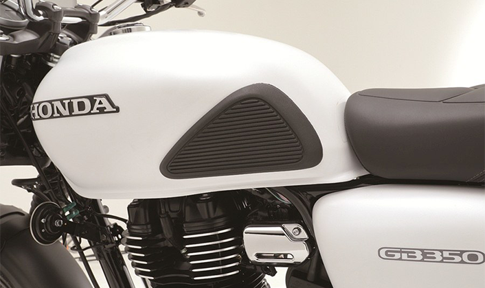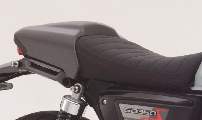 또한 가벼운 앞뒤 펜더와 소형화한 리어 램프류, 레드 스티치 포인트가 더해진 터크 앤 롤 (Tuck & Roll) 스타일의 스웨이드 텍스처 시트로 세련된 이미지를 완성하였으며, 전용 사이드 커버와 연료 탱크 상단의 센터 스트라이프로 GB350S만의 개성을 표현했습니다.