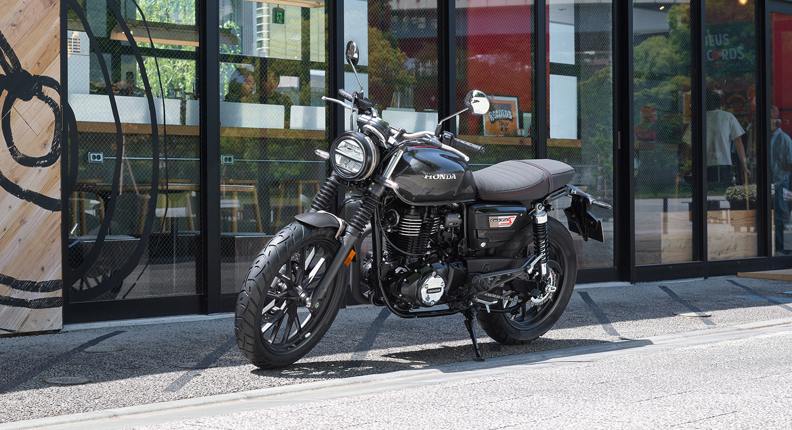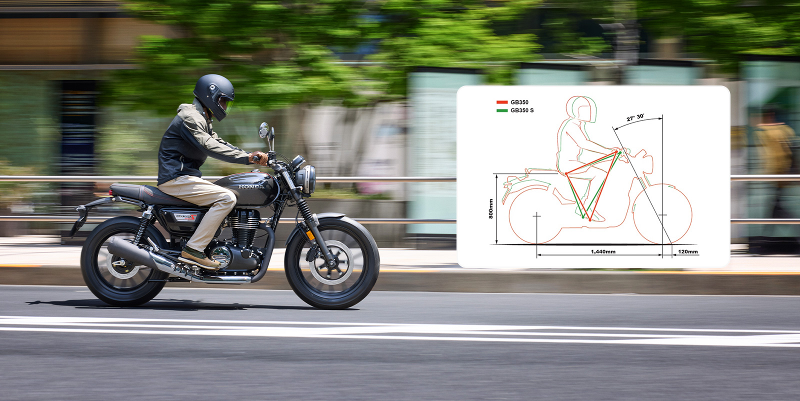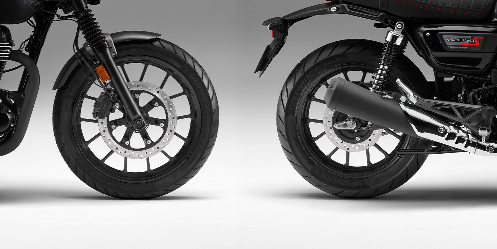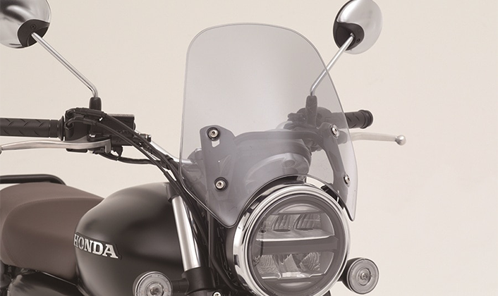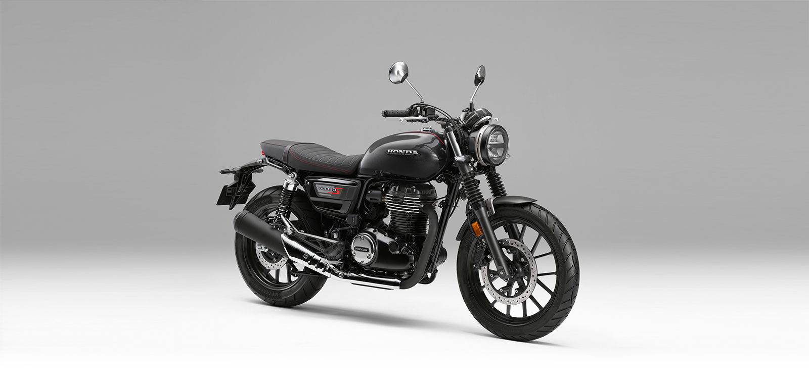 또한 가벼운 앞뒤 펜더와 소형화한 리어 램프류, 레드 스티치 포인트가 더해진 터크 앤 롤 (Tuck & Roll) 스타일의 스웨이드 텍스처 시트로 세련된 이미지를 완성하였으며, 전용 사이드 커버와 연료 탱크 상단의 센터 스트라이프로 GB350S만의 개성을 표현했습니다.