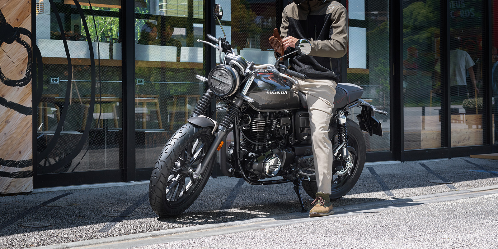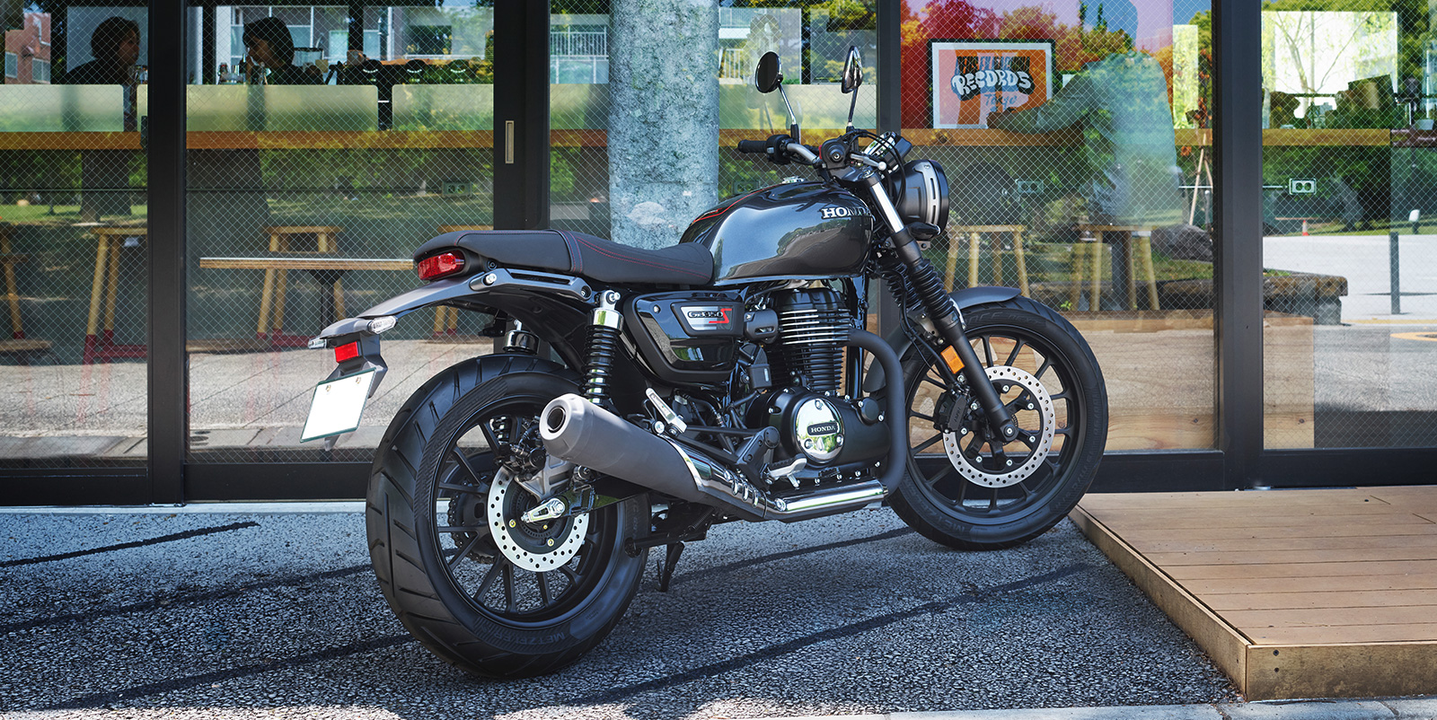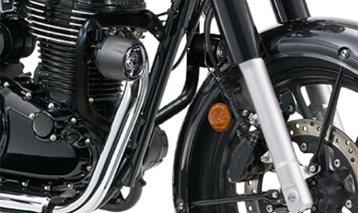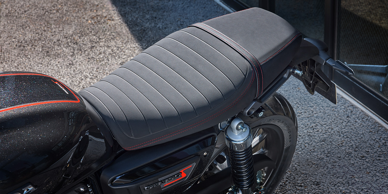 또한 가벼운 앞뒤 펜더와 소형화한 리어 램프류, 레드 스티치 포인트가 더해진 터크 앤 롤 (Tuck & Roll) 스타일의 스웨이드 텍스처 시트로 세련된 이미지를 완성하였으며, 전용 사이드 커버와 연료 탱크 상단의 센터 스트라이프로 GB350S만의 개성을 표현했습니다.
