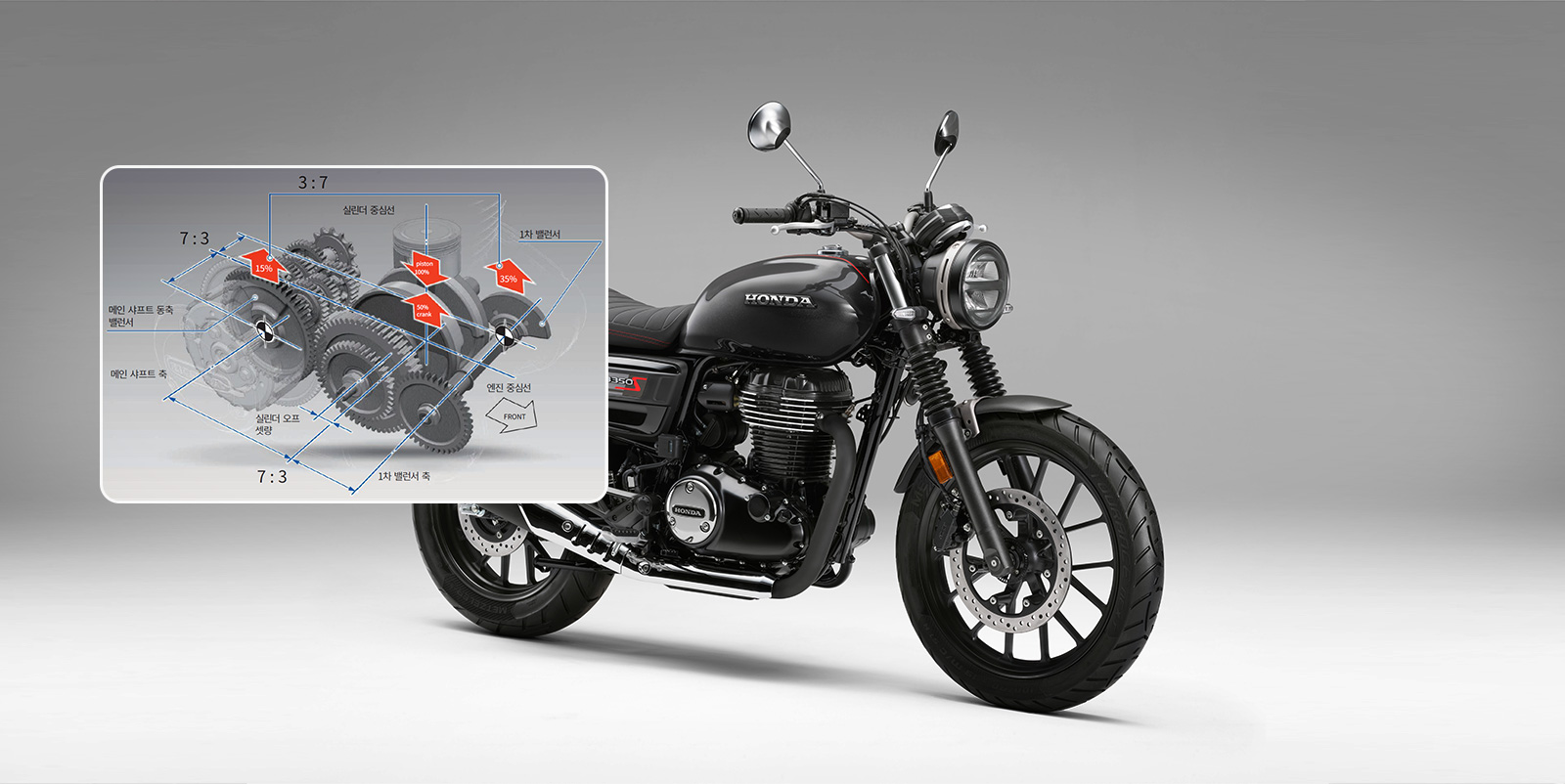 GB350에 스포티한 감각을 입힌 GB350S는, 더욱 역동적이고 개성있는 스타일을 표현했습니다.